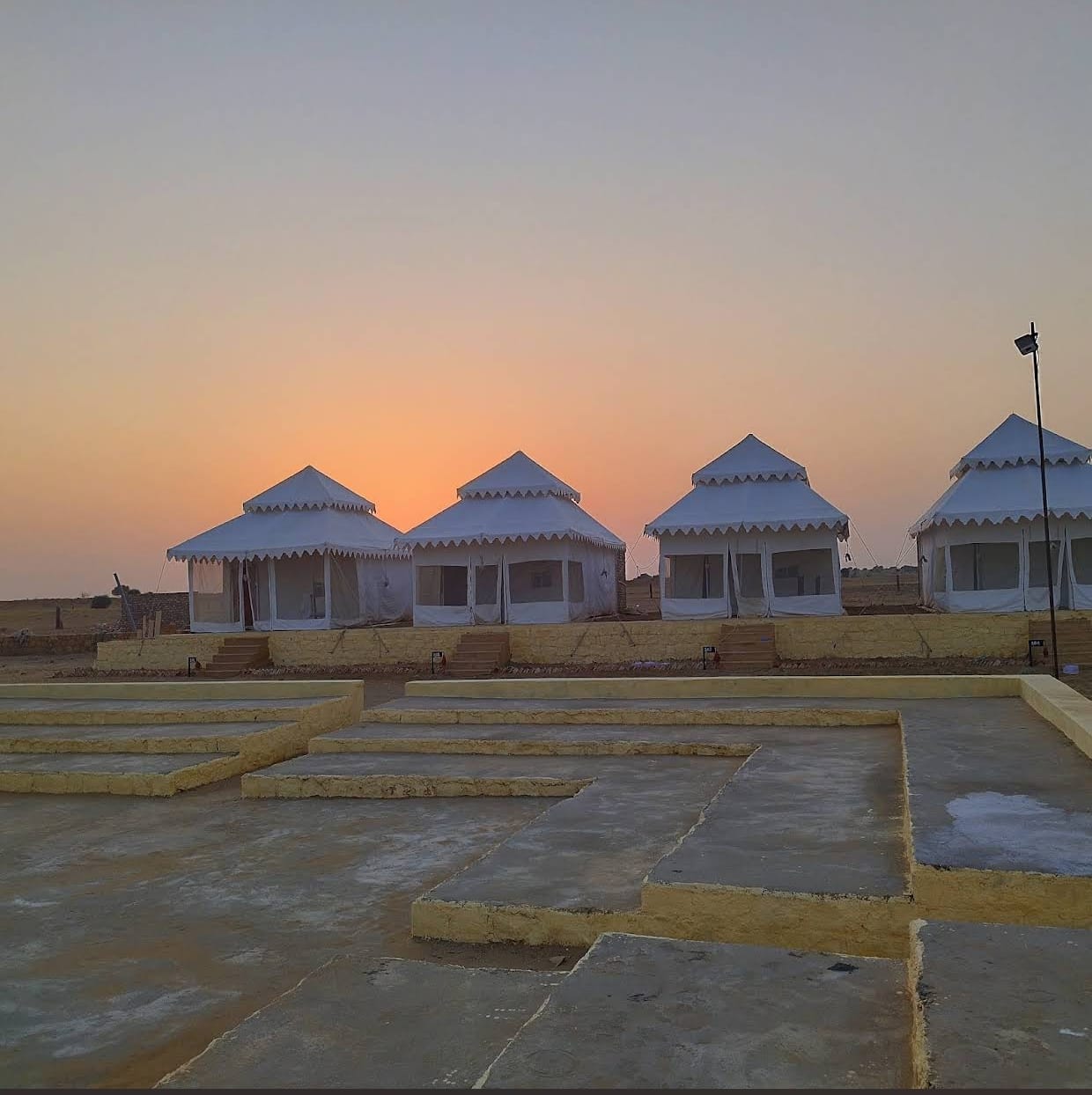 Our Living desert camp offers a comfortable and authentic desert experience with well-appointed tents featuring cozy bedding and clean restroom facilities.